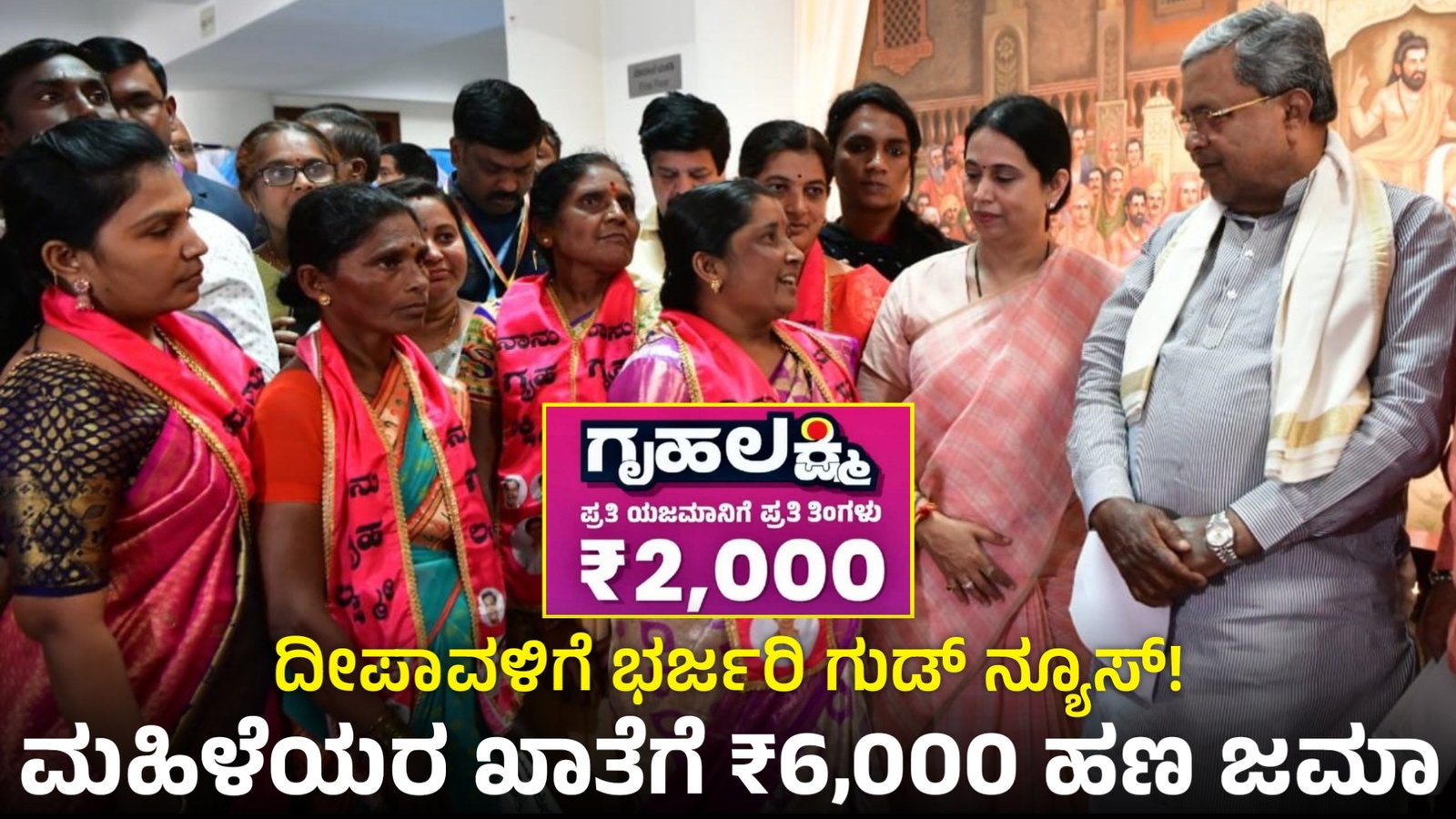 Gruhalakshmi Scheme: ದೀಪಾವಳಿಗೆ ಗೃಹಲಕ್ಷ್ಮಿಯರಿಗೆ ಭರ್ಜರಿ ಗುಡ್ ನ್ಯೂಸ್! ಮಹಿಳೆಯರ ಖಾತೆಗೆ ₹6,000 ರೂ. ಹಣ ಜಮಾ ಇಲ್ಲಿದೆ ನೋಡಿ ಮಾಹಿತಿ